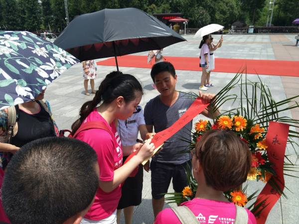 在参观纪念馆结束之后,实践团还向毛泽东同志雕像三鞠躬,并献上花篮,共同缅怀毛泽东同志的丰功伟绩。实践团还在长沙市精心安排组织了多项红色文化考察项目,行程充实,收获颇丰,为中国梦主题表情包的创作收集了大量的素材与灵感。