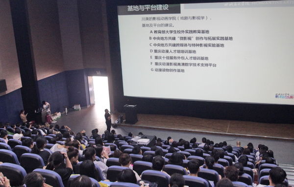 周小波首先向2017级新生及家长们表示热烈欢迎,并就影视动画学院的发展历史、人才培养模式、专业特色、教学成果及就业前景等做了介绍,着重对各专业的发展方向及专业优势进行了讲解。讲解全面而生动,让新生对自己所学专业有了基本的认识并对大学期间的学习充满期待。