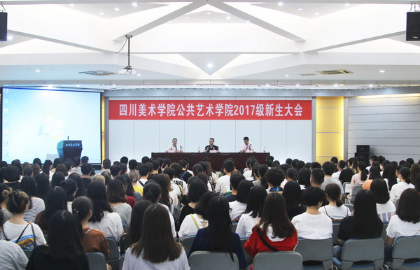 9月9日上午9点,公共艺术学院2017级新生大会在多功能厅举行,由郭小兵主持。公共艺术学院党政领导向同学们表达最真挚的欢迎,并从不同角度表达了学院对新生的寄语和殷切希望。郭晏麟希望同学们在铭记历史使命与责任的同时,肩负起一代川美人对艺术的传承与发扬。钟正武激励新同学们坚定理想信念,锤炼坚韧品质,为实现自己的青春梦想奋发向上,把青春梦融入中国梦,以青春梦助力中国梦,最终成就一番事业,实现中华民族伟大复兴中国梦,展现当代中国青年奋发有为的精神面貌。老生代表杨海宇、新生代表曹敏同学分别发表了大会感言。会后,各教研室分别组织各自专业方向的2017级新生举行了新生专业教育会,指导新生尽快适应大学课程内容,使新生对学科内容及所学专业有全面的了解。