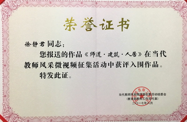“当代教师风采微视频征集活动”由国家教育部教师工作司发起,联合中国教育电视台、中国教师发展基金会、北京电教馆共同举办。作为教育部庆祝第33个教师节的重要活动之一,旨在广泛宣传党的十八大以来教师队伍建设取得的新成就,大力展现当代教师的新风貌,在全社会进一步营造尊师重教的浓厚氛围,以优异成绩迎接党的十九大胜利召开。