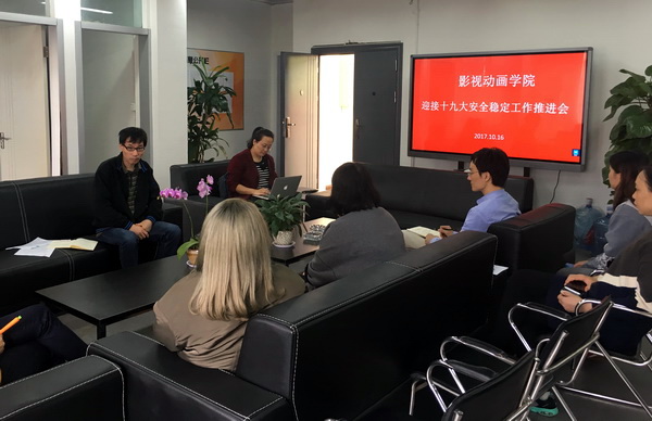 会上,与会老师就学院近期安全稳定情况逐一行了分析、讨论。会议要求,班主任要尽快召开班会,并深入教室、学生寝室中,结合学生网贷排查、学生手册的学习,引导同学们关注十九大、迎接十九大;办公室老师要结合自己工作,一是做好消防安全检查的各项准备工作,查看《影视动画学院消防安全实施细则》上墙及落实情况;二是做好意识形态工作,严格把关讲座、论坛内容,严格按照学校规定履行相关报批手续。