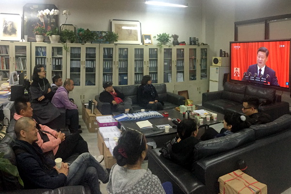 10月18日上午9点,油画系党总支召集全系师生党员及教职工集中收看党的十九大开幕会,认真听取习近平总书记所作的十九大报告。教职工及党员同志们认真观看了开幕会,并对大会报告进行了讨论。党的十九大的召开鼓舞着全系师生在以后的工作学习中不断前进。