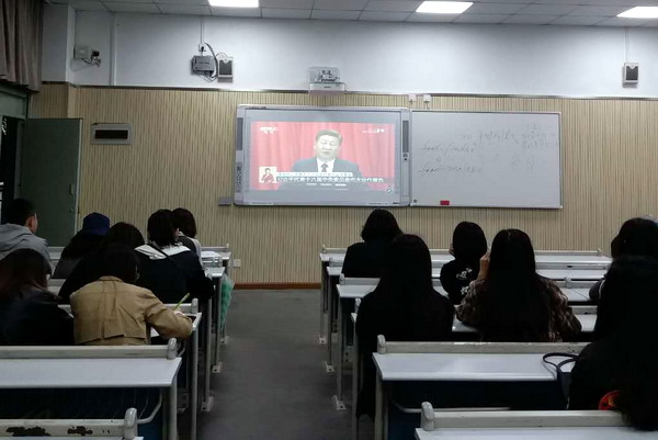 全系教职工及师生党员表示要认真学习十九大报告精神,在以后的工作中要更加脚踏实地,为实现中华民族伟大复兴的中国梦而贡献自己的一份力量。