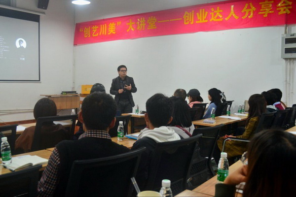 10月27日晚上,智驿品牌创始人、品牌策略总监刘朝应邀在 大学生文化创意微型企业园培训室为我校师生带来讲座《学习-工作-创业:职业三步曲的人生选择》。