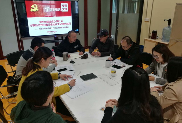 11月2日,建筑艺术系党总支教工党支部开展“学习十九大、党员当先锋”主题党日活动。支部全体成员庄严地佩戴党徽参加活动,活动由支部书记张剑涛主持。