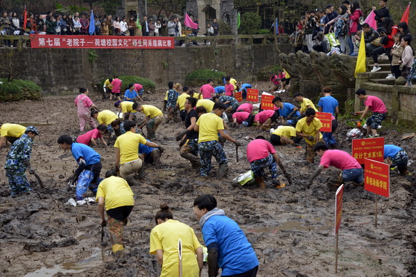 赛场上,参赛者们在你追我赶的挖藕中变成了一个个泥人,甚至打起了“泥水仗”。观众们兴致不输参赛队员,欢呼声、加油声交织在一起,随着队员们成功挖起一只莲藕,岸边的观赛者们就爆发出一阵欢呼声,大家微博、微信分享不停,现场一片欢腾。比赛结束后,校工会还为参赛师生准备了热乎乎的姜汤和热水。