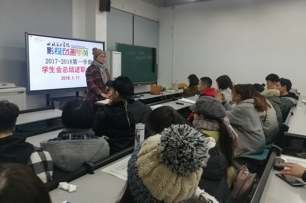 1月11日晚上7点,影视动画学院团总支学生会2017年秋季学期总结述职会议在学院教室举行。影视动画学院团总支书记、辅导员老师和学院团总支学生会全体成员参会。