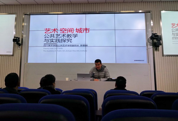 公共艺术学院副院长郭晏麟首先传达了《关于印发〈 硕士学位授权学科(方向)和专业学位(领域、方向)调整实施办法〉的通知》(川美〔2018〕6号文件),重点强调了学校学科方向、专业学位领域(方向)设置的基本条件。随后从“艺术 空间 城市”三个维度阐释了公共艺术的教学与实践探究。指出公共艺术就是城市公共空间的艺术,积极发展公共艺术教育与实践,要为高等艺术教育培养高素质、应用型艺术人才,开展公共艺术理论与创作研究,要以公共艺术实践引领城市创新发展。