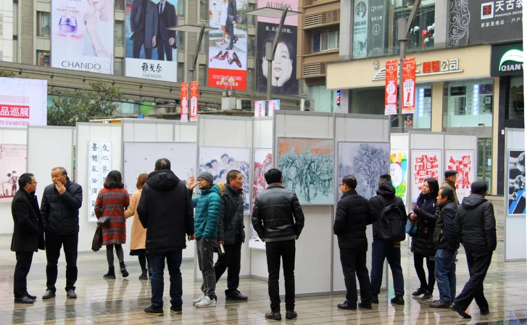为深入学习宣传贯彻党的十九大精神,以艺术的形式生动形象地展现新时代特色面貌,1月26日,由中共重庆市委宣传部、市文联主办;市美协、 、中共九龙坡区委宣传部、区文联承办的“艺绘新时代 共筑中国梦”党的十九大精神主题美术创作作品巡展在九龙坡区杨家坪步行街开展。