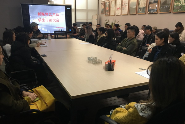 2月25日下午4:30,新媒体艺术系召开全系学生干部新学期工作会,系党总支书记聂玉红,辅导员老师,各班班干部、学生会成员参加了会议。
