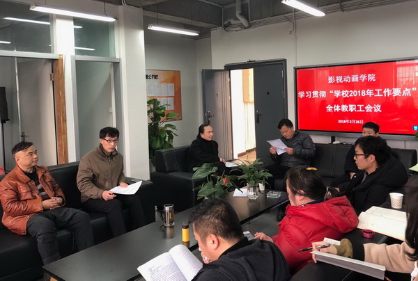 2月26日下午4点,影视动画学院召开全院教职工大会,组织学习贯彻 2018年工作要点。学校党委副书记左益出席会议。影视动画学院党总支书记柏在华主持会议。