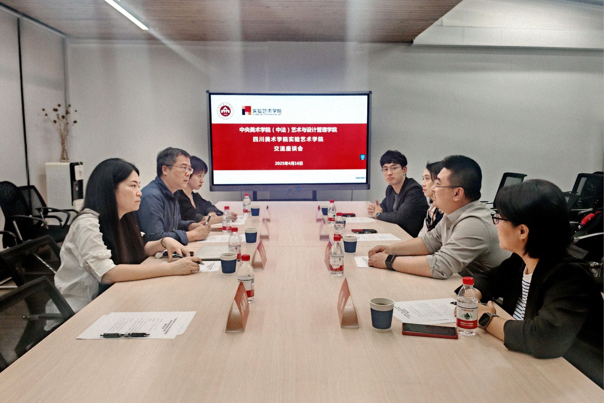 4月16日下午,中央美术学院(中法)艺术与设计管理学院(简称“中法学院”)直属党支部书记黄可一、副院长王可一行,赴我校实验艺术学院开展交流座谈活动。实验艺术学院党委书记吴倩、院长李川及相关同志参加座谈。