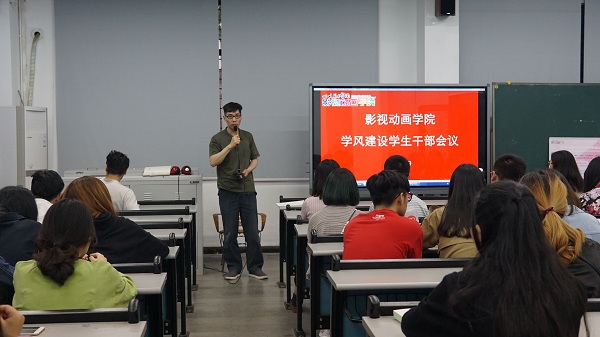 5月9日下午,影视动画学院召开学风建设学生干部培训会。影视动画学院党总支书记柏在华,各年级辅导员、影视动画学院各年级班委以及学生会成员和学生党员参加了会议。