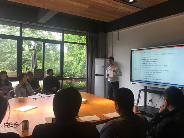 杨吟兵针对详细讲解审核评估基础知识,其中包括审核评估基本情况、指导思想、考查重点、考察范围等等。在讲解审核评估基本情况时,主任重点说明了本科评估对学生的影响、专家组进校评估时采用的方式、教师和学生应该怎样积极参与学校的迎评工作。