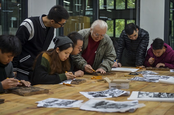 坚持价值引领。习近平总书记强调“要遵循思想政治工作规律,遵循教书育人规律,遵循学生成长规律,不断提高工作能力和水平。”版画系坚持以立德树人为根本,将高素质版画人才培养作为系科建设的主要目标。“师者,人之模范也。”版画系抓住师资建设这个关键环节,夯实师德,充分发挥研究生导师、专业课教师、辅导员、班主任、行政管理老师的价值引领作用,全系一盘棋,营造全员育人氛围。四个工作室主任均由党员教师担任,能把握好正确的办学方向。专业教师爱岗敬业,都能“守好一段渠,种好责任田”,切实保证了“建好大学课堂”这一根本阵地和“守好大学课堂”这一根本任务。版画系5位离退休老教授一直坚持给本科生授课,老中青三代版画人一起守护着版画的神圣课堂和精神家园,他们与学生分享版画精神与家国情怀,将社会主义核心价值观融入课程、融入教学、融入课堂、融入教职工的教书育人全过程。