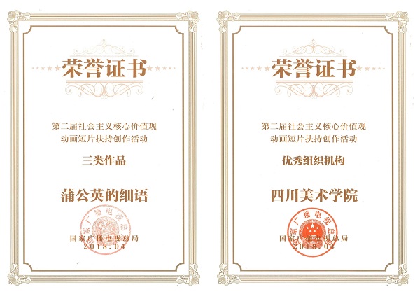 由国家新闻出版广电总局主办,教育部高等学校动画、数字媒体专业教学指导委员会协办的“第二届社会主义核心价值观动画短片创作活动”于4月25日公布优秀作品名单,影视动画学院创作动画片《蒲公英的细语》获评优秀作品, 影视动画学院获评优秀组织机构。