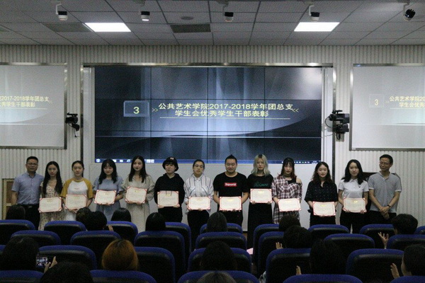 7月4日下午,公共艺术学院2017-2018年度团总支、学生会工作总结表彰暨换届会议在黄桷坪校区公共课十教室举行。公共艺术学院党总支书记钟正武、副书记郭小兵及全体辅导员参会。会议由团总支书记潘珉迪主持。