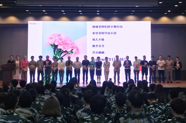 新生入学教育结束后,学生代表们向学院老师们用献花的方式表达对老师们谆谆教诲的感恩。