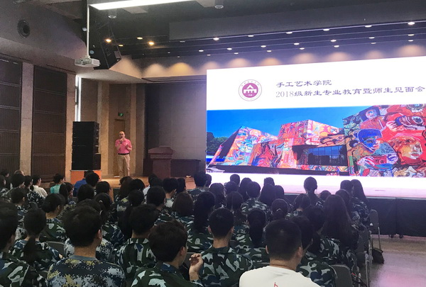 当日下午5点在设计楼G402召开了2018级新生家长见面会,手工艺术学院党政领导为家长分别介绍了工艺美术的前景、办学理念以及教学方式,并与家长热烈交流。家长们对手工艺术学院的工作表示了极大肯定,对老师们的认真负责高度认可。
