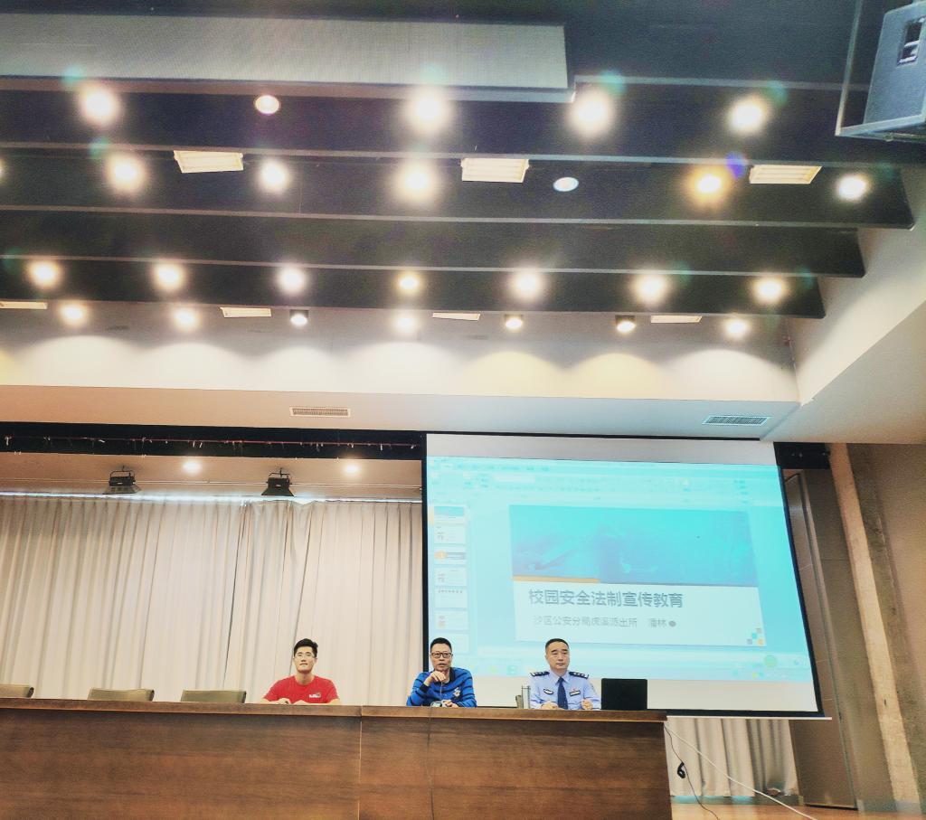9月18日上午,重庆市公安局沙坪坝区分局虎溪派出所教导员潘林应邀来我校在多功能厅,为我校2018级本科新生围绕防盗、防骗、防事故等内容举办治安防范专题讲座。讲座由保卫处处长、武装部部长黄勤主持。