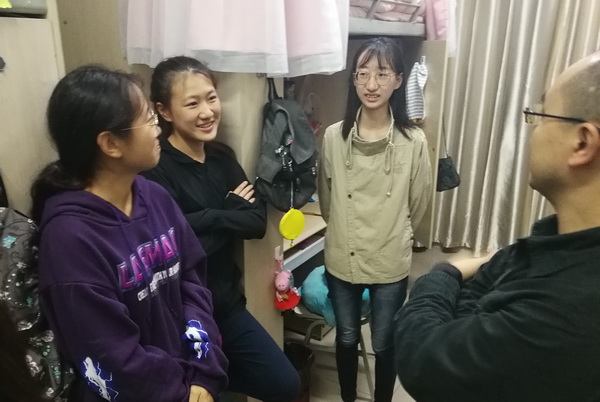 系上老师一行还检查了寝室安全隐患和有无宠物饲养情况,总体情况良好。余晖要求同学们严格遵守学校住宿管理规定,维护好寝室卫生和寝室和谐,争创“文明寝室”。
