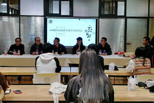风景园林教研室老师为同学们解读了风景园林专硕的培养方案和计划。辅导员老师为同学们讲解了奖学金评选的有关情况,让同学们在掌握宏观的前提下,对微观层面的东西也要做到心中有数。