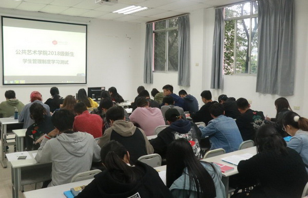 10月9日下午,公共艺术学院在黄桷坪校区附中209、210教室以及公共课十教室组织开展了2018级新生对《 学生手册(2018版)》内容掌握度的测试。
