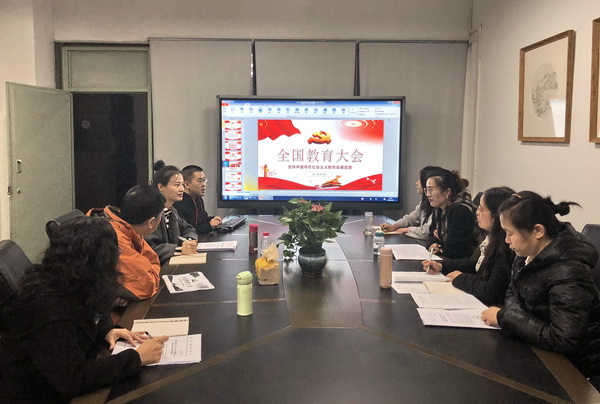 会上,全体同志再次研读了习近平总书记在大会上的重要讲话,并结合教育部领导的相关阐释,交流了分头学习体会。大家积极发言,气氛活跃,一致认为要将习近平总书记关于教育工作的系列重要论述,与关于思想政治工作的系列重要论述结合起来,一体学习、一体贯彻、一体落实。切实有效地把习近平总书记在全国教育大会上的重要讲话学在深处、悟在透处、用在实处、干做前处;结合学校工作实际,把教书育人做好,把师德师风塑优。