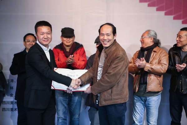 开幕式上,学校副校长焦兴涛、展览策展人王林、著名雕塑家朱成先生先后致辞。雕塑系器物工作室主任谢彬为金山先生颁发捐赠证书,金山先生无偿捐赠玉石原材料,以支持 雕塑系器物工作室的玉石雕刻创作以及科研项目研究。