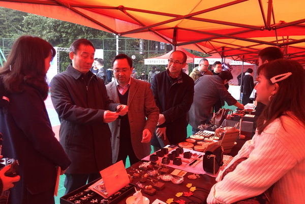 重庆市大中专毕业生就业指导中心余跃主任莅临展洽会现场指导。他依次走访了重庆零玖陶瓷工艺品设计有限公司、重庆寨上文化传播有限公司、漆艺术产品工作室、重庆河东健力雕塑艺术有限责任公司等公司(团队),亲切了解各位创业大学生的现状和问题,并鼓励创业大学生们继续努力为社会创造更多有价值的东西。