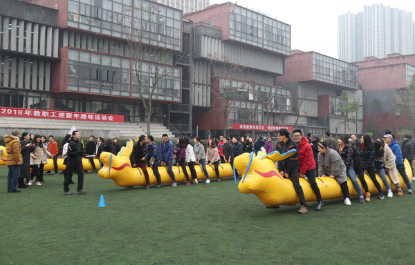 为了迎接新年的到来,营造生动活泼、宽松和谐、积极向上、健康有序的良好校园氛围,进一步增强学校集体凝聚力,提升各部门工会团队协作精神,2018年12月21日下午,校工会在学校运动场举行了丰富多彩、趣味纷呈的“ 2018年教职工迎新年趣味运动会”。
