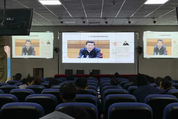 首先,全体教职工观看学习了《习近平新时代中国特色社会主义思想三十讲》之第十八讲《推动社会主义文化繁荣兴盛》。教职工充分认识到文化是一个国家、一个民族的灵魂,文化兴国运兴,文化强民族强,没有高度的文化自信,没有文化的繁荣兴盛,就没有中华民族的伟大复兴。会议要求教职工要加强理论学习,结合自身工作认真思考如何坚持以人民为中心的创作导向推进社会主义文艺繁荣发展、在当代中国如何实现中华优秀传统文化的创造性转化和创新性发展等问题。