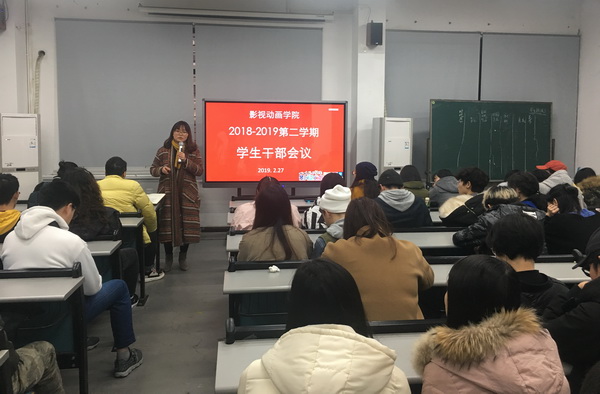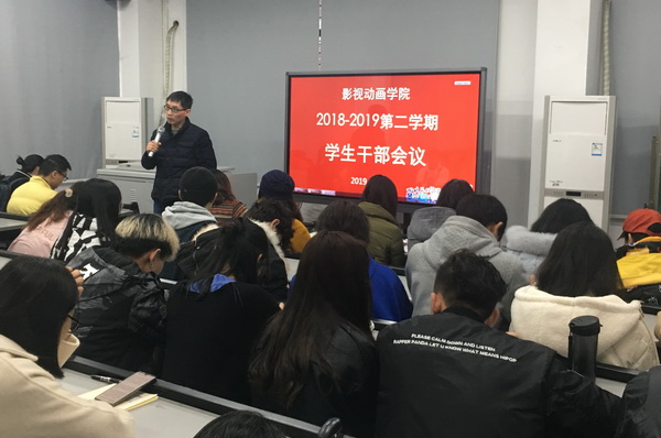 2月27日下午,影视动画学院召开新学期学生干部会议。影视动画学院党总支书记柏在华、各年级辅导员、全体班干部、团总支学生会全体成员参加了会议。