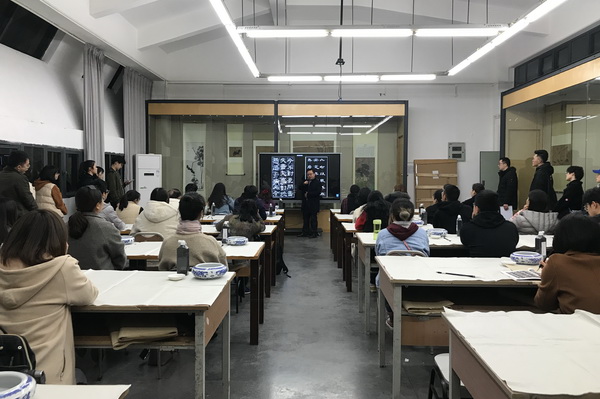 3月2日晚7点,中国画系“书法夜校”正式开班。本次活动得到了积极的响应,全院师生踊跃报名参与。中国画系党政领导、人事处干部和部分学校师生参加了开班仪式。夜校名誉校长、我校党委书记黄政委托系党总支书记胡刚,对书法夜校的顺利开班表示热烈祝贺,并殷切希望通过书法夜校的举办,提高广大师生对中华优秀传统艺术的认知与了解,吸收传统艺术养分,融汇贯通于各自的专业。要认真学习贯彻习近平总书记在看望参加政协会议文艺界社科界委员时的重要讲话精神,坚持与时代同步伐,坚持以人民为中心,坚持以精品奉献人民,坚持用明德引领风尚。进一步加强师资队伍建设,提高人才培养质量。