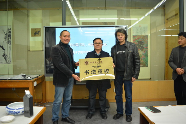 开班仪式上举行了书法夜校授牌仪式,系党政领导向书法教研室主任傅舟授牌。傅舟教授为第一期学员主讲,介绍了中国书法文化与热潮,使广大师生受益匪浅,充分了解了书法的用笔方法、结字规律和章法布置。