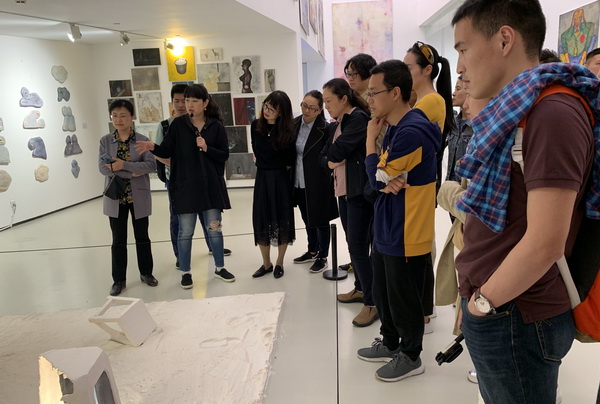 本次主题党日活动的形式是参观2019年毕业生作品展,活动邀请了油画系副教授熊莉钧为大家讲解毕业教学和作品创作的过程。毕业创作/设计作为艺术院校最重要的一项综合型实践教学环节,指导学生从构思、方案、手稿到最后创作成果的呈现,时间长、任务重、要求高,是学校教学成果和学生专业水平最直接的体现。