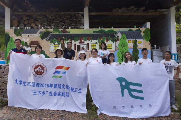 为深学笃用习近平新时代中国特色社会主义思想和党的十九大精神,全面落实习近平总书记视察重庆重要讲话精神和在纪念五四运动100周年大会上的重要讲话精神,以庆祝新中国成立70周年为契机,大力弘扬“奉献、友爱、互助、进步”的志愿服务精神,助力打赢打好脱贫攻坚战,在推进西部大开发形成新格局中展现新作为、实现新突破,助力美丽乡村建设。7月13日,美术教育系“大美重庆-青春晒”乡村旅游宣传团队在武隆桐梓镇2019年开展暑期“三下乡”社会实践活动,此次社会实践活动在美术教育系辅导员的带领下,围绕“艺暖人心,绘记扶贫”为主题,组织学生开展为期五天的社会实践活动。