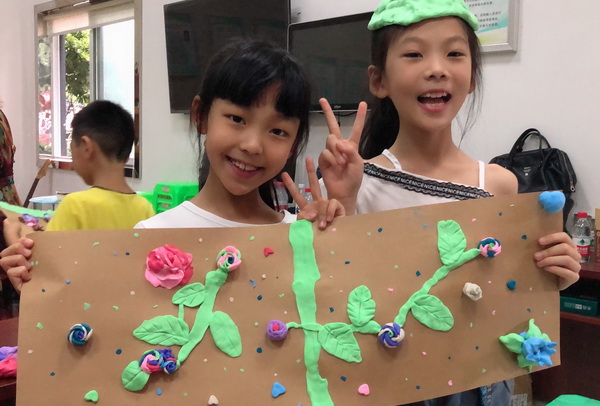 7月13日,手工艺术学院师生来到南坪街道东兴路社区,在社区工作人员的帮助下,顺利与社区儿童结为伙伴。基于手工艺术学院的特色,我们为社区儿童提供了手工创作体验,软陶造型能力强,是安全、时尚的工艺材料,在儿童参与的软陶创作中,有机融入垃圾分类常识,如软陶制作鸡蛋壳、汉堡、植物等,皆为儿童日常接触到的“易腐垃圾”,形象生动,有效增强记忆,让其从小养成垃圾分类的习惯。