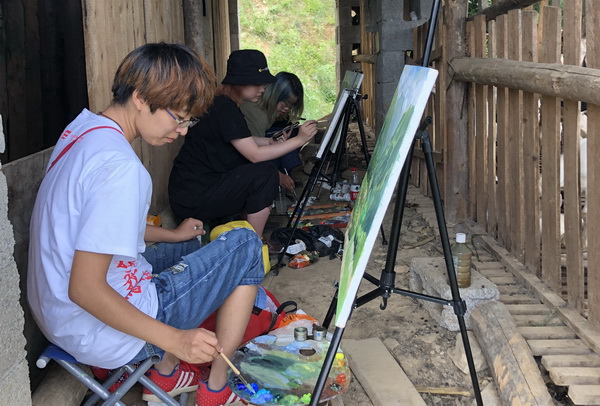 此次活动分为“大师带领我们艺术扶贫”及“关爱留守儿童”两个部分。前四天,同学们在翁凯旋教授的带领下,用画笔寻找天元乡的隐藏美景及动人事迹。从在扶贫攻坚中焕发新活力的万春村到海拔超过1700米的关庙村,从新华村到龙头山等处,一路走来,美景怡人、民风淳朴。这也使大家保持持久的创作兴趣,创作出了一系列优秀的作品。