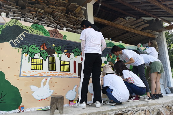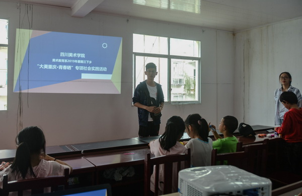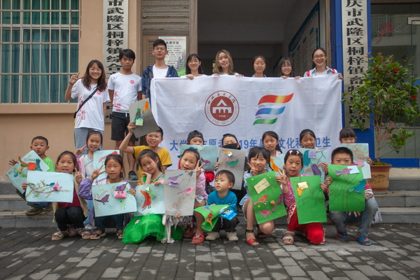 7月13日至17日,美术教育系“大美重庆-青春晒”乡村旅游宣传专项实践团队赴重庆市武隆区桐梓镇暑期“三下乡”社会实践活动,紧密结合艺术院校优势和特色,充分发挥学生所学专业知识,以文化艺术助力武隆桐梓镇旅游产业发展。在后坪苗族土家族乡的市级贫困村白石村开展美丽乡村建设墙绘活动;走进茶园,眺望长征梯田,在大自然中进行绘画写生及摄影创作;开展了一场“设计于我于生活”和“十年后的我”为主题的艺术小课堂;并在活动的最后一天,在桐梓镇人民政府篮球场举行了”大美重庆-青春晒“乡村旅游宣传社会实践专项活动成果展。