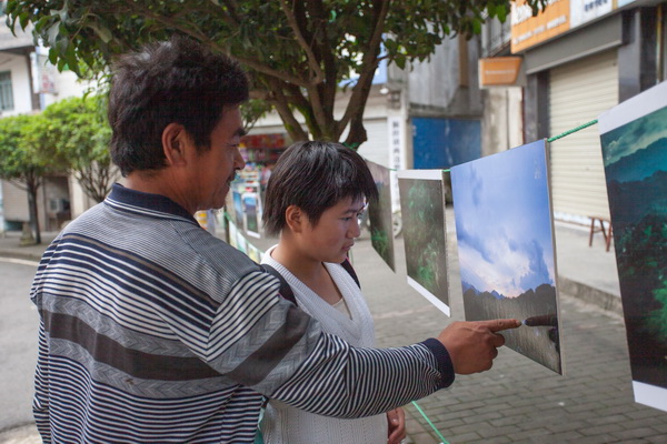 17日,将摄影作品、油画与水彩作品于桐梓镇桂花大道的行道树下进行展览。桐梓镇的陈镇长也前来对美教系三下乡的成果表示认可,对我们所做的努力表示感谢。为表达连日来桐梓镇对我校师生的照顾及感谢之意,实践团队将大部分作品赠送给了桐梓镇。