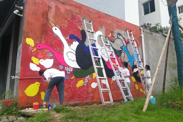 尽管此次“三下乡”活动中时常遇到大雨,给墙绘工作带来了一定的困难,但志愿者们努力克服困难,最终圆满完成了此次活动。志愿者们也纷纷表示,此次“三下乡”虽然辛苦,但却很充实,自己也将在今后继续用自己的美术专业特长为美丽乡村建设和发展贡献力量。