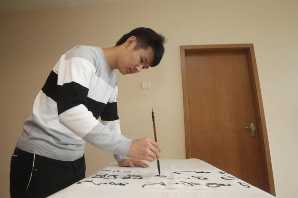 程功,男,1998年2月出生,共青团员,浙江省衢州市人.就读于 2017级中国画系书法专业,他自幼失聪,一级听力残疾,一级语言残疾。但他自强不息,三岁时就已经独自远离父母,到杭州一家封闭式语训中心学说话。7岁开始勤学书法,炎暑寒冬从不停歇,在课堂上靠着板书和盯着老师的口形来学习课程。课后,别人玩时他学习,别人睡觉时他还在学习,耳朵听不到,他就用眼睛看,用心想;别人听一听就会,他就用一小时,两小时,还获得了第九届宋庆龄奖学金。在书法上一坚持就是十几年,写秃了上百支毛笔,经常为了写好一个字,一幅作品练到深夜,手冻裂过,脚站肿过,但从来没想过放弃。功夫不负有心人,参加教育部主办的首届全国大中小学生规范汉字书写大赛现场总决赛荣获全国一等奖,此次大赛全国参赛学生近1000万,通过层层选拔,最终胜出;并于12岁时代表中国去日本参加”中日友好书法交流”活动;参加全国兰亭杯残疾人书法大赛荣获一等奖,全国仅5名,成为历届年龄最小的获奖者,作品被国家残疾人美术馆永久收藏。作品曾在人民大会堂展出,获得了河南书法家协会主办的墨舞神州,墨舞中原,墨舞海南连续三届一等奖,并获得了张海奖学金。湖南省书法家协会举办的全国欧阳询杯高中生第一名,上海书法家协会主办的全国第一届,第二届言子杯获得最高奖,提名。2016年参加了山东省书法家协会主办的全国书圣书法大展;同年书法作品入选”沙孟海奖”第九届全浙书法大展;等等。共参加全国最高奖10余次、省级10余次。每年春节前夕都随老师同学们参加”送春联下乡”活动,获得当地老百姓的好评。2017年以浙江省书法专业第二的成绩考取了 书法专业,开始了大学生涯的刻苦学习。