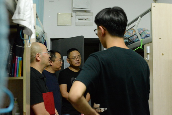 走访过程中,老师们对学生们诸如重庆独特的气候是否适应等衣食住行方面的问题都进行了详细询问,对他们的学习状况给予了极大的关心,询问大家国庆假期去向,提醒同学们一定要注意出行安全。李川提醒同学们要养成良好的学习和生活习惯,同时注意寝室用水用电安全;唐勇提醒学生们注意人身和财产安全。学院老师们为同学们送上了节日的祝福,希望大家过一个愉快、充实、健康的国庆假期。