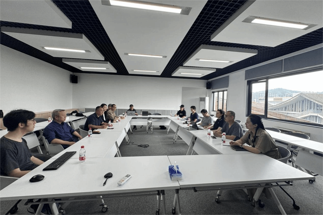 参观结束后,双方举行了专题座谈会。跨媒体艺术学院党委书记、副院长徐元,副院长高世强及相关系部负责人参会。座谈会上双方围绕思政工作、本科教学、学科建设、毕业创作指导机制、跨学科融合实践、师资队伍建设等核心议题展开了深度交流。实验艺术学院分享了与电子科技大学本科联合学士学位培养的探索,以及在优化学科生态、提升人才培养质量等方面的探索与实践。