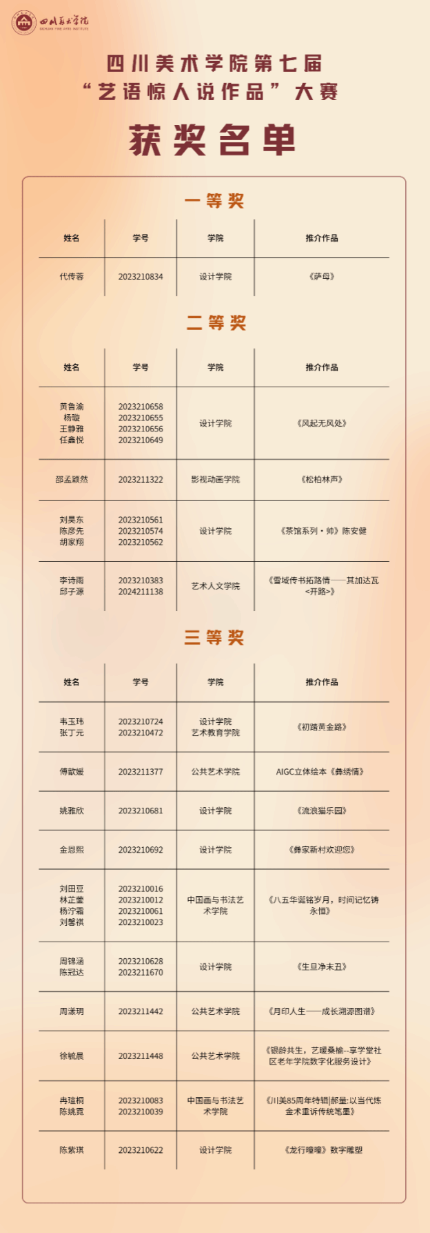 此次大赛既是川美建校85周年的文化献礼,也是川美博雅智识的教育理念与艺术融合的生动实践,还是川美重庆市一流课程艺术沟通与写作课的延伸实践平台。大赛旨在提升艺术院校学生随机应变的思考能力,能言善辩的表达能力,提笔慧写的写作能力,讲好中国艺术故事的能力。川美学子以多元的艺术语言活化传统基因、锚定时代议题,让校史文脉在创新表达中焕发新生,很好地达成了比赛的目的。