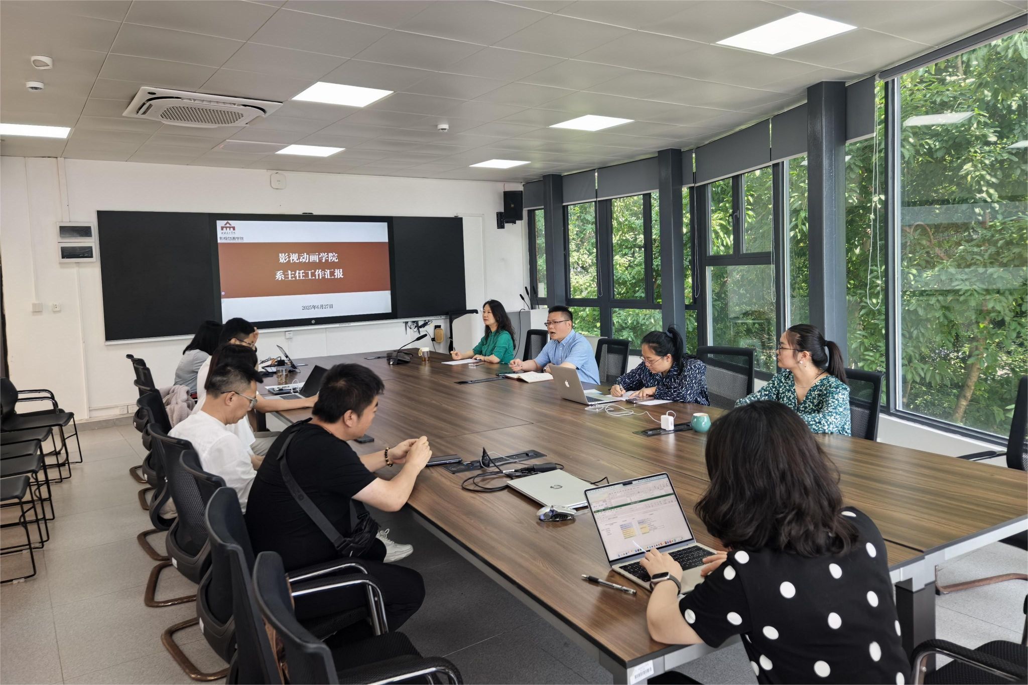 6月27日上午,影视动画学院党委召开系主任工作汇报会。学院党委委员、各系主任、主任助理和教学秘书参加,会议由党委书记郭小兵主持。