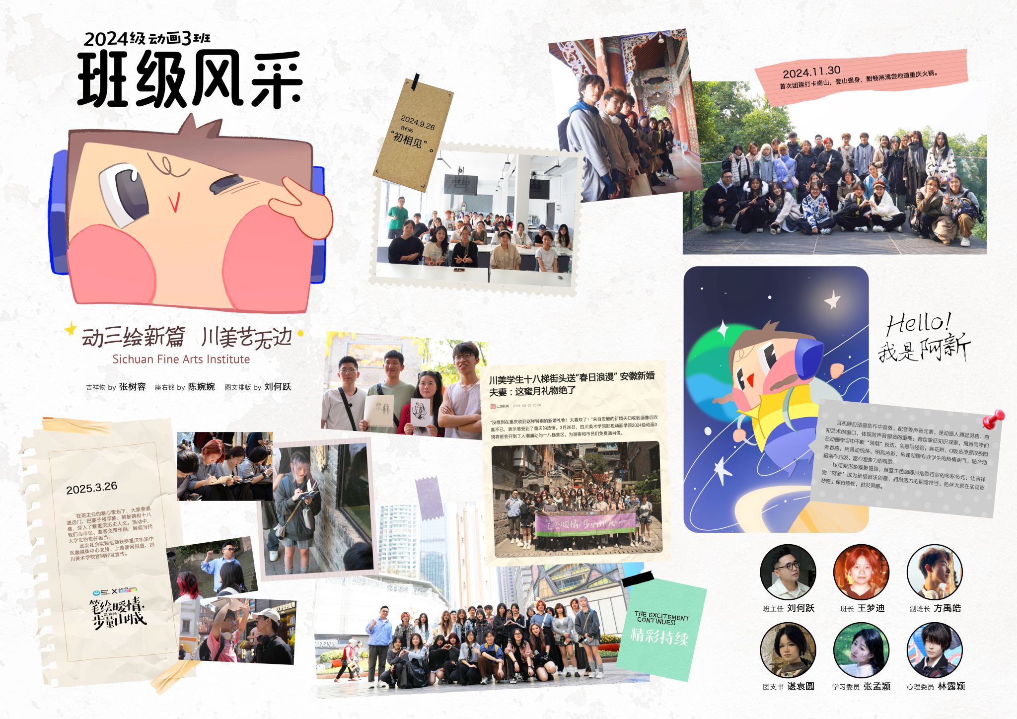 近日,影视动画学院深入推进班级文化建设,以立德树人为根本,引导各班级结合固定教室阵地和专业特色,通过凝练班级精神、设计吉祥物、绘制动漫自画像等活动,营造团结向上、学风浓厚的集体氛围,显著提升了班级凝聚力。
