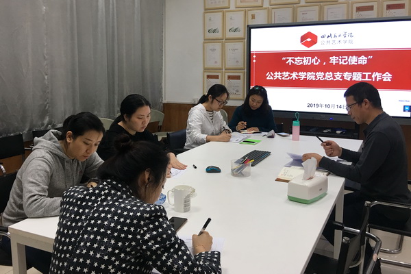 10月14日下午, 为贯彻落实“不忘初心、牢记使命”主题教育十月工作任务,公共艺术学院党总支在黄桷坪校区党员活动室召开“不忘初心、牢记使命”主题教育第二次工作会议。学院党总支书记雍朝永与各党支部书记参加了会议,会议由雍朝永主持。