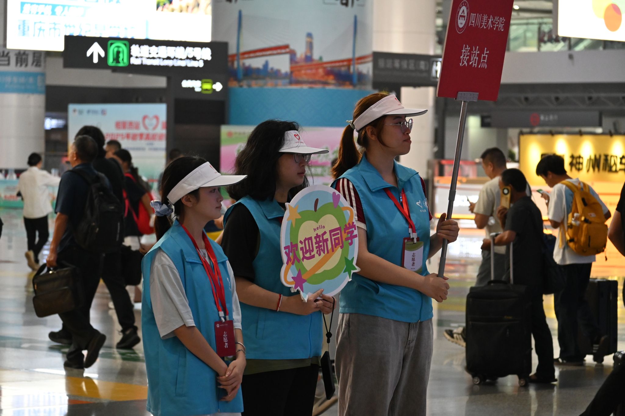 9月5日,为保障学校迎新工作顺利开展,校团委在重庆西站及学校南门、西门等重点区域设立校级学生组织志愿服务工作站,组织“艺小青”志愿者开展全方位迎新服务,确保新生入学报到流程顺畅、高效有序。